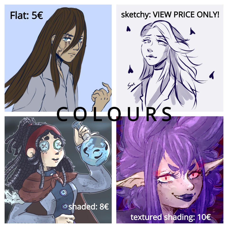 traditional pieces have similar prices as the digital ones, but due to limitations, I won't offer coloured traditional pieces.